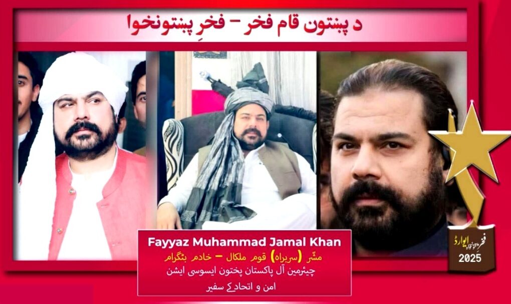 بٹگرام (سوشیل ایشین نیوز) –مشّر (سربراہ) قوم ملکال – خادم بٹگرام، چیئرمین آل پاکستان پختون ایسوسی ایشن اور امن و اتحاد کے سفیر فیاض محمد جمال خان ایک باوقار قبائلی قائد اور امن، بھائی چارے و انسانی خدمت کے علمبردار ہیں۔ حالیہ دنوں میں انہیں ان کی گراں قدر خدمات کے اعتراف میں فخرِ خیبر…